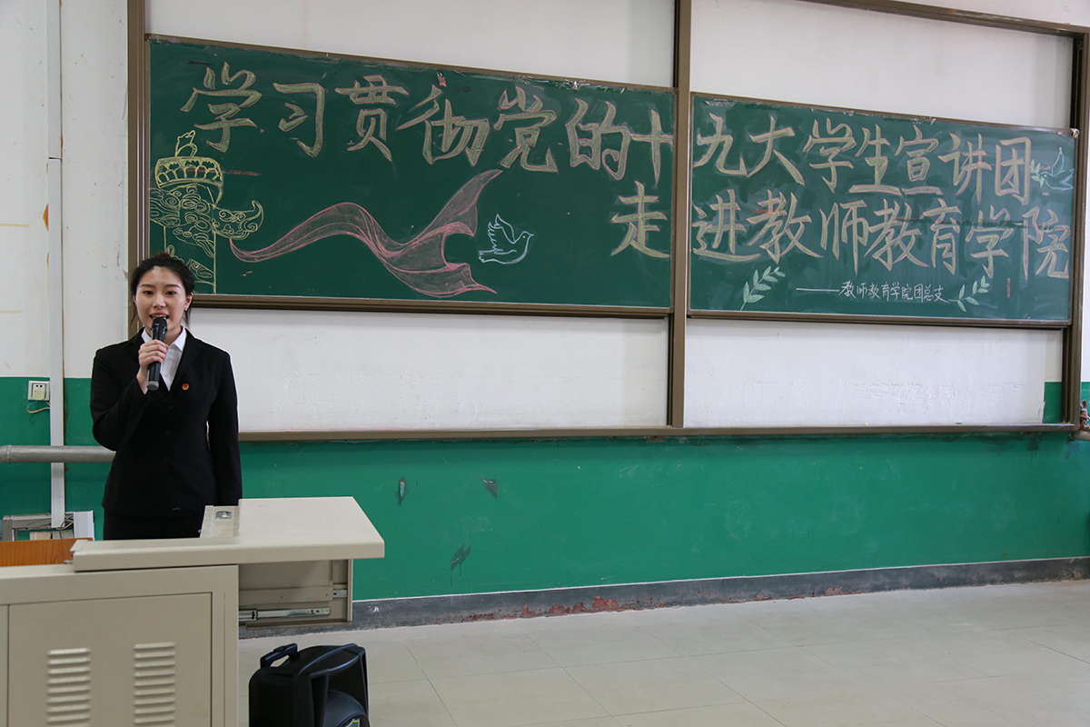 准确透彻的宣讲,让同学们深受教育鼓舞。大家表示,要进一步带着感情、带着责任学习党的十九大报告,深刻领会报告的丰富内涵,把思想和行动统一到党的十九大精神上来,以习近平新时代中国特色社会主义思想为行动指南,不忘初心,牢记使命,奋力走好新时代的长征路。