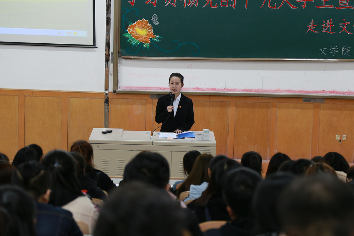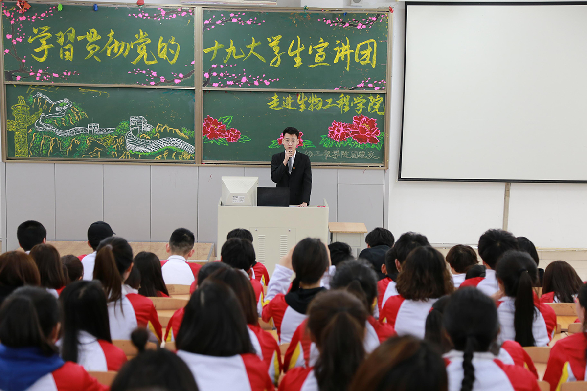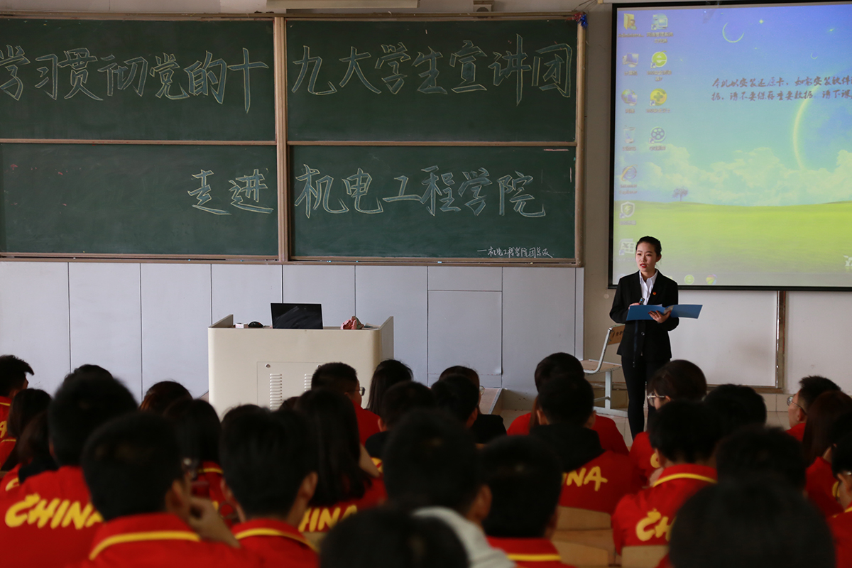 为推动兴起学习宣传贯彻党的十九大精神热潮,校团委组织成立了学习贯彻党的十九大精神学生宣讲团。3月28日、29日,学生宣讲团走进十二个学院,围绕十九大报告的概述、十九大关键词、习近平新时代中国特色社会主义思想、社会主要矛盾变化、从严治党、报告中关于青年的论述等六个方面内容进行了宣讲。