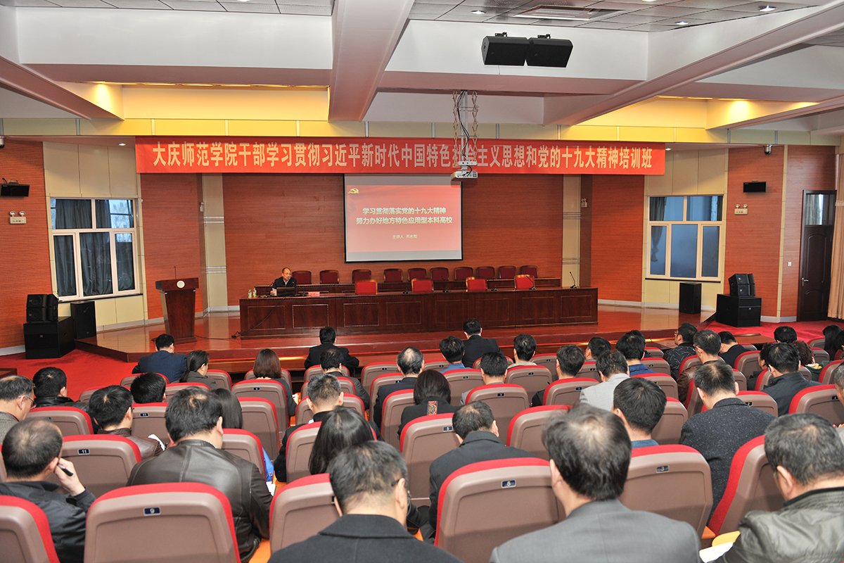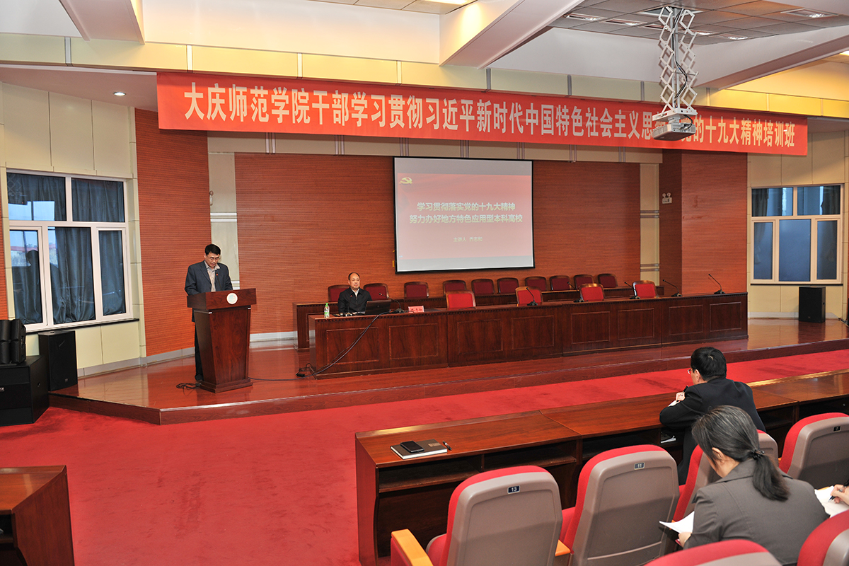 校长乔志和作题为《学习贯彻落实党的十九大精神努力办好地方特色应用型本科高校》的专题报告。乔校长从学思结合、用党的十九大精神武装头脑和贯彻落实党的十九大精神、努力办好地方特色应用型本科高校两个方面,从“四个意识”“四个自信”“四个服从”“四个服务”入手,结合工作实际,阐述了对从严治党、落实工作、党性修养和办学方向等方面的思考和感悟。围绕大学的五个职能,就审核评估重点考察的“五个度”进行思考,要求各级党组织和干部要用习近平新时代中国特色社会主义思想指导学校工作,用实实在在的工作业绩促进党的十九大精神的贯彻落实。