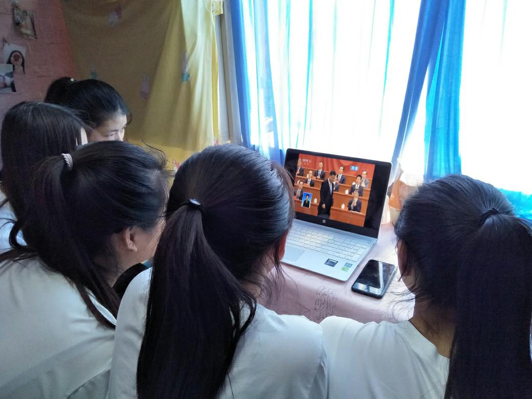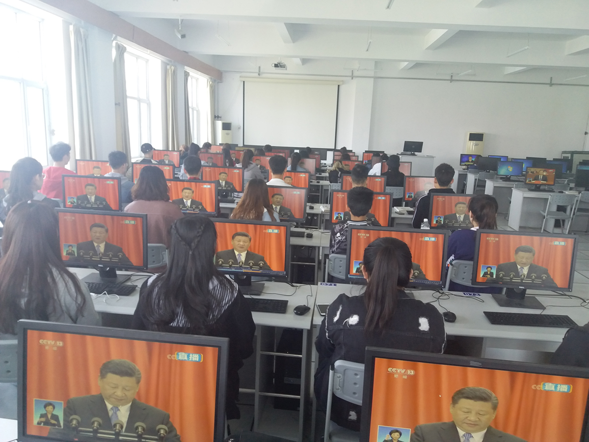 校园里,学校师生在会议室、在教室、在餐厅、在宿舍、在图书馆,通过电视、网络、手机等多种渠道积极收听收看大会实况,聆听习近平总书记的重要讲话。