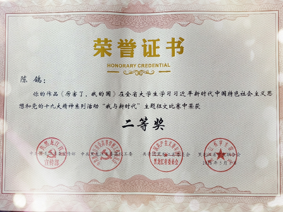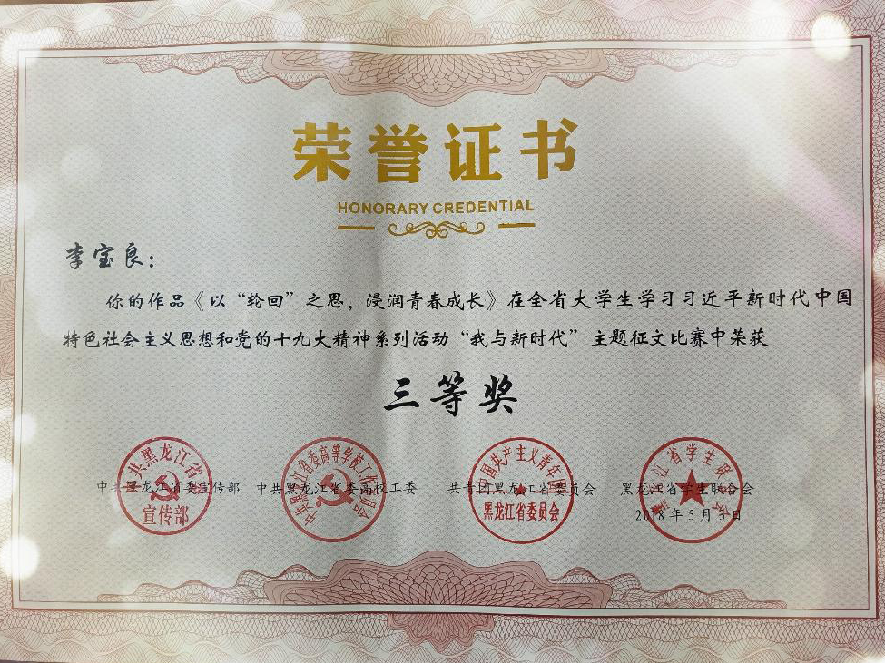 在“我与新时代”主题征文比赛中,bat365学生陈鸽的作品《厉害了,我的国》获得二等奖,学生李宝良的作品《以“轮回”之思,浸润青春成长》获得三等奖。本次征文活动共评选出一等奖作品5篇,二等奖作品10篇,三等奖作品15篇。