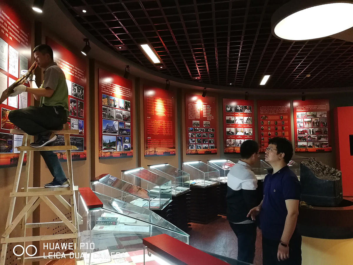在学校党委副书记、研究中心主任王革教授指导下,为更好地发挥文献研究中心窗口作用,展示学校大庆精神铁人精神办学育人的最新理论研究、教学实践、文化建设、研修培训成果,更好地迎接本科教学工作审核评估专家组入校考察,研究中心副主任陈立勇副教授、张文彬老师就展厅和展板进行了重新设计、规划和布展,从内容拟定、图片筛选、再到板式确定、空间布局与设计师几易其稿,加班加点,并最终于5月27日完成改版改建工作。