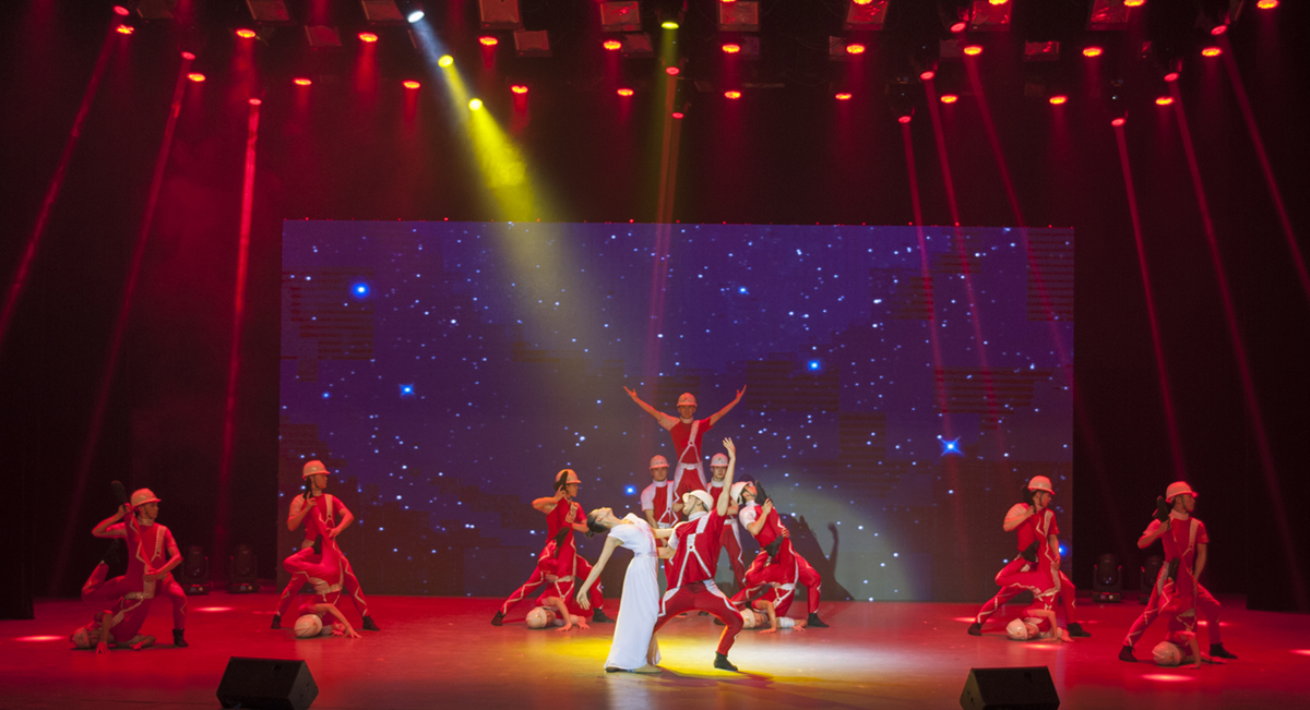 雄浑的交响乐《红旗颂》拉开了演出大幕。