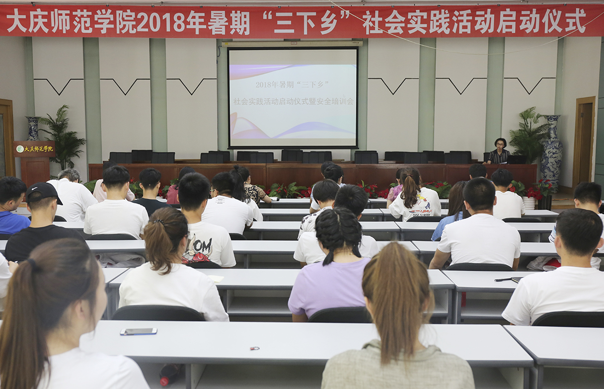 为深入学习贯彻习近平新时代中国特色社会主义思想,按照《关于开展2018年全国大中专学生志愿者暑期文化科技卫生“三下乡”社会实践活动的通知》的有关要求,7月3日下午,bat3652018年暑期“三下乡”社会实践活动启动仪式在铁人讲堂举行。校团委、各学院团总支老师及社会实践团队师生代表共计200余人参加了本次启动仪式。