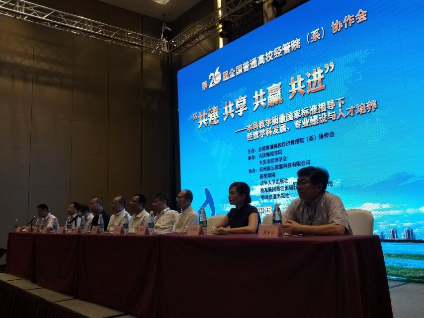 第二十六届普通高校经济管理院(系)协作会于暑期在大庆召开。本届会议由bat365官方官网经济管理学院和大庆市经济学会承办,苏州国云数据科技有限公司、超星集团、税友集团浙江衡信教育科技有限公司、清华大学出版社、中国铁道出版社协办。会议共有来自全国各地高校、企事业等70多家单位200余名代表参加了本次盛会。