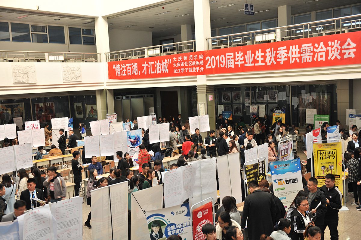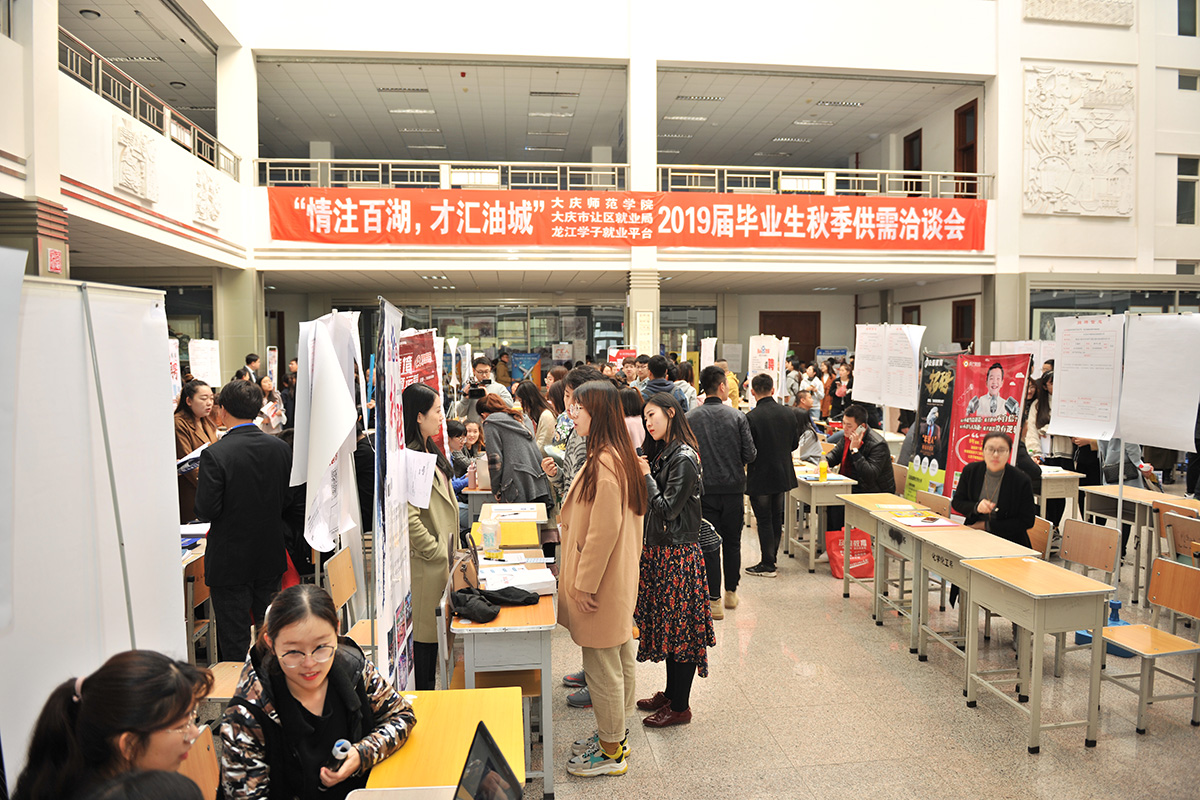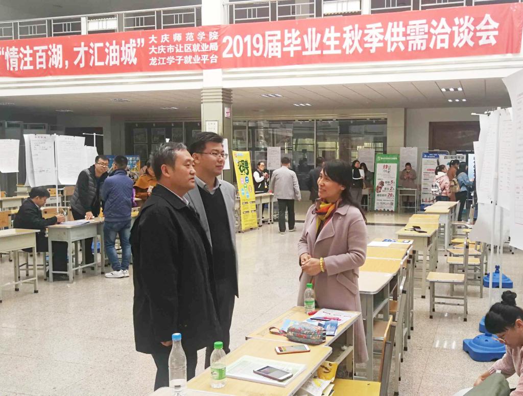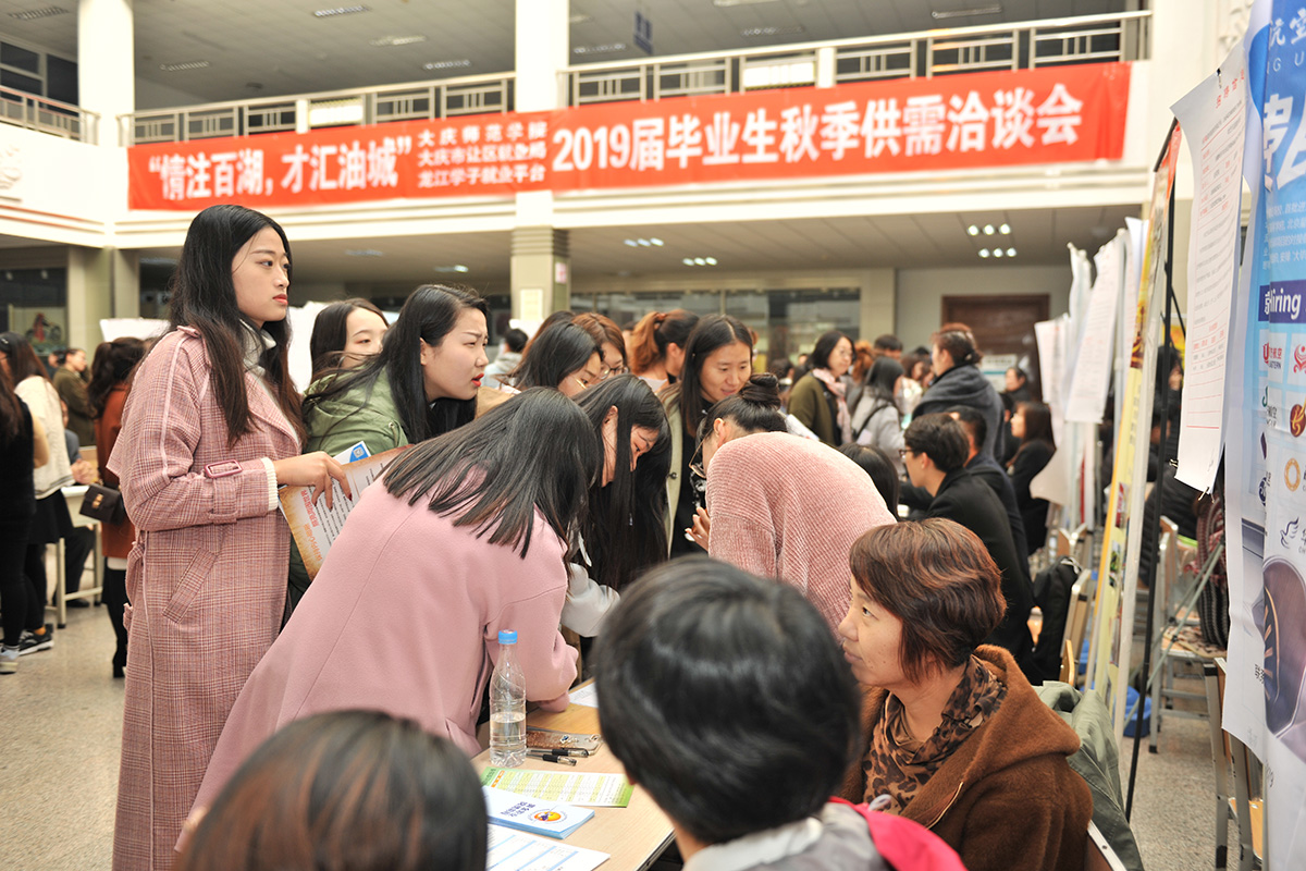 本次供需洽谈会由大庆市人才服务局、龙江学子就业平台和bat365共同举办。吸引了北京航空航天大学、新疆哈巴河县教育局、深圳市中油阳光大酒店有限公司等省外企业32家;黑龙江丰电电力运营集团股份有限公司、黑龙江寰海国际邮轮管理有限公司、黑龙江致合云数据孵化器管理有限公司等省内企业93家,共计125家用人单位参会,提供就业岗位近4000个。据不完全统计,bat365有247名毕业生与用人单位达成了就业意向,占毕业生总数的10.6%。学校党委书记徐克明、校长乔志和、主管副校长张国军、职能部门全体人员和部分学院书记、院长、教师到现场主动与用人单位沟通,了解企业用工需求,为毕业生现场指导。2019届在校毕业生及部分大三同学2000余人次参与此次活动。