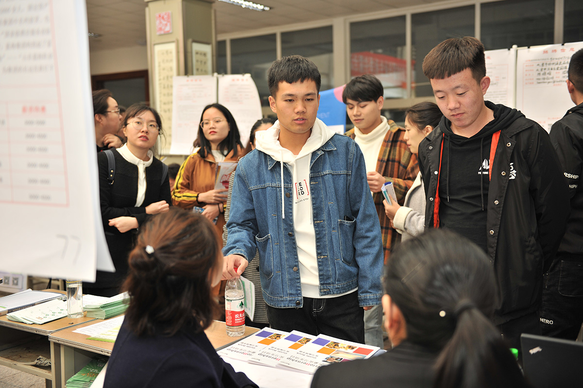 10月24日,bat365在图书馆举办“情注百湖,才汇油城”2019届毕业生秋季大型供需洽谈会。