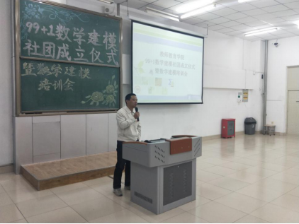 为了实现审核评估提出的“一团一品”的目标,教师教育学院再次将专业社团与学生社团紧密结合,2018年11月2日在主楼阶梯教室3—2室隆重举行了99+1数学建模社团成立仪式暨数学建模培训会,会议由社团成立发起人数学系张玲老师主持。