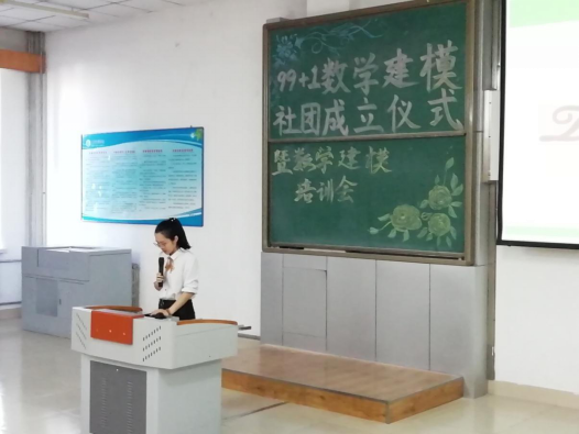 99+1数学建模社团发起人——数学系主任张玲老师详细介绍了本社团创立的初衷、基础和未来发展目标,现场解读了99+1数学建模社团标识的内涵与意义。张玲老师希望全体同学能像社团标识寓意的那样,在社团里每位同学都能够通过自己不断努力最后收获希望与成功。