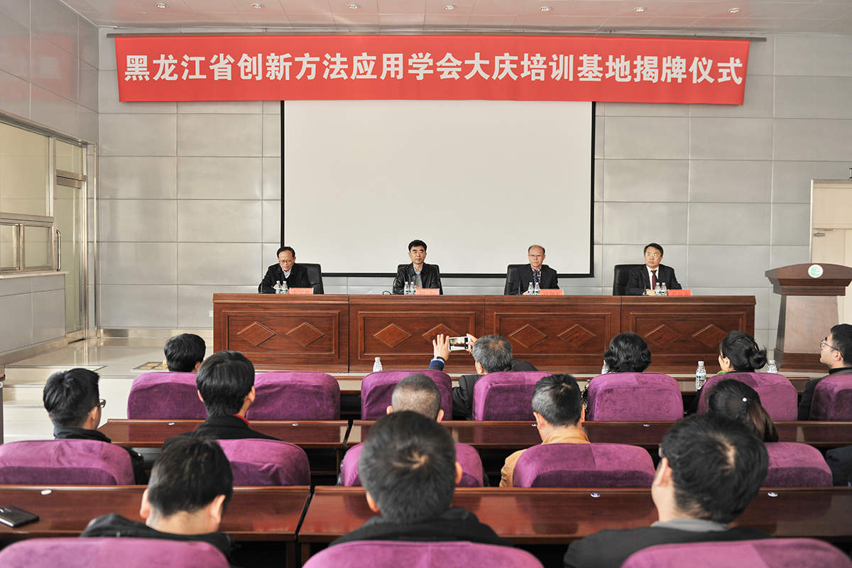 11月7日,黑龙江省创新方法应用学会与大庆师范院继续教育学院共建“创新方法培训基地”签约揭牌仪式在方晓校区举行。bat365官方官网副校长刘恒、黑龙江省创新方法应用学会理事长刘和军、大庆油田技术发展部等有关领导、参加“首届中国创新方法大赛”决赛的我省选手以及继续教育学院的全体员工共60余人参加了揭牌仪式。继续教育学院党总支书记李宝良主持仪式。