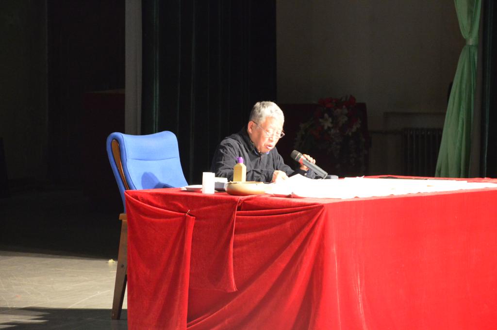 接着,由原美术与设计学院教授、当代著名花鸟画家耿起峰教授做了题为《两岸猿声啼不住,轻舟已过万重山》的学术宣讲。讲座中,耿起峰教授从当代几位画家谈起,分别介绍了徐悲鸿、齐白石、吴冠中、丁绍光、周天黎等几位画家的艺术风格,并对他们的画作进行了深入的分析和详细的解读。耿教授从奔马、牡丹、公鸡三个具有典型传统文化意义的形象入手,结合自己的创作经历,向全体师生展示了中国传统艺术精神。