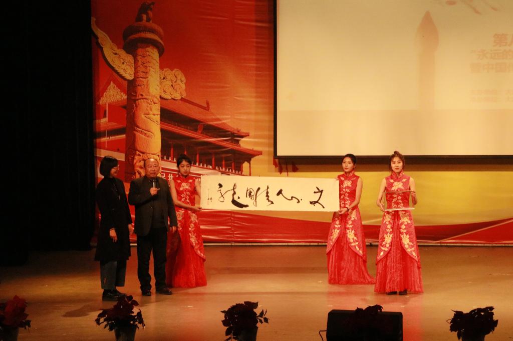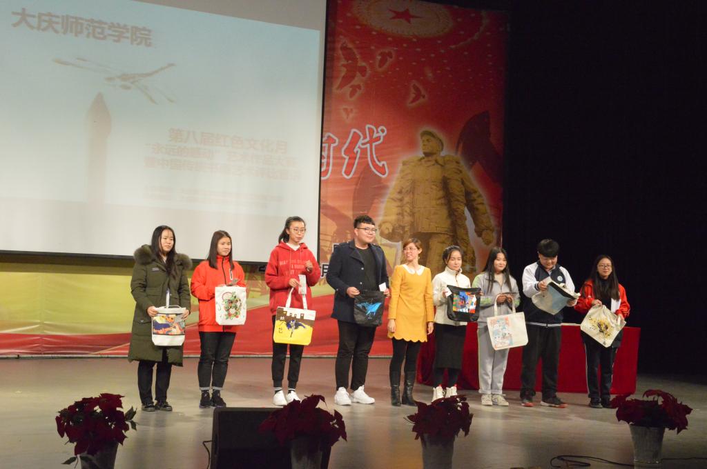 2018年11月7日下午,bat365官方官网第八届红色文化月“永远的感动”艺术作品大赛暨中国传统书画艺术评比宣讲活动在大学生活动中心召开。bat365官方官网党委书记徐克明、校长乔志和、党委宣传部部长郭春满、学工处处长楚丽丽、部分机关和二级学院党总支书记、学生党支部书记以及美术与设计学院全体师生参加了本次活动。
