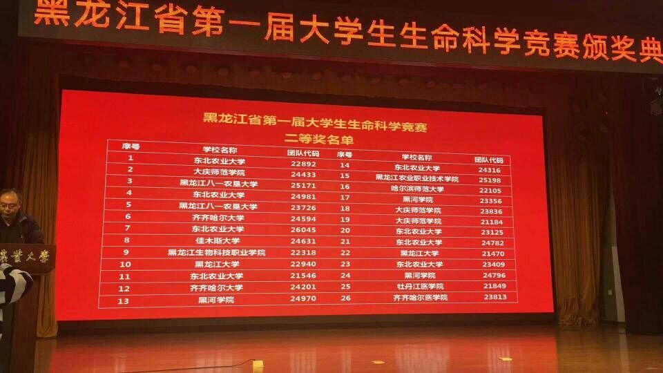 2018年11月16日至18日,由黑龙江省普通高等学校创新创业教育指导委员会、东北农业大学和黑龙江省教育厅高教处共同主办的黑龙江省第一届大学生生命科学竞赛决赛在东北农业大学举行。