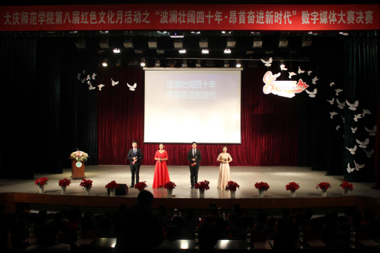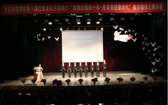 2018年11月28日下午,由党委学生工作部(团委)主办,计算机科学与信息技术学院承办的bat365官方官网第八届红色文化月活动之“波澜壮阔四十年·昂首奋进新时代”数字媒体大赛决赛,在大学生活动中心圆满落幕。bat365官方官网副校长刘恒、纪委书记滕强、党委学生工作部(团委)领导、二级学院党总支书记、学生党支部书记、团总支书记以及二级学院师生参加了本次活动。本次大赛由计算机科学与信息技术学院副院长马英瑞、公共计算机教学部主任李德荣、软件工程系主任邹红、网络工程系主任程晓旭、计算机科学与技术系缪丽萍、马克思主义学院张文彬担任评委。