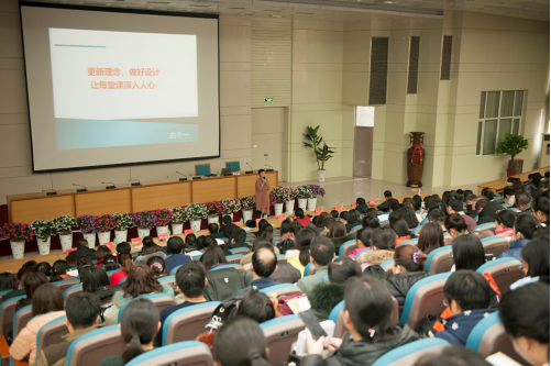 冯展极教授从“如何从事教育事业一辈子、如何带好一届学生、如何上好一门课程、如何讲好一堂课”四方面深入思考教育的本源,提出要从更新理念、做好设计、让每一堂课深入人心入手,做到真正的“课堂革命”。接着,冯教授从教师职业的挑战、职业观与教育观、教学的真正含义、教学设计流程以及教学基本功等五个方面详细介绍了高校如何进行有效课堂教学。