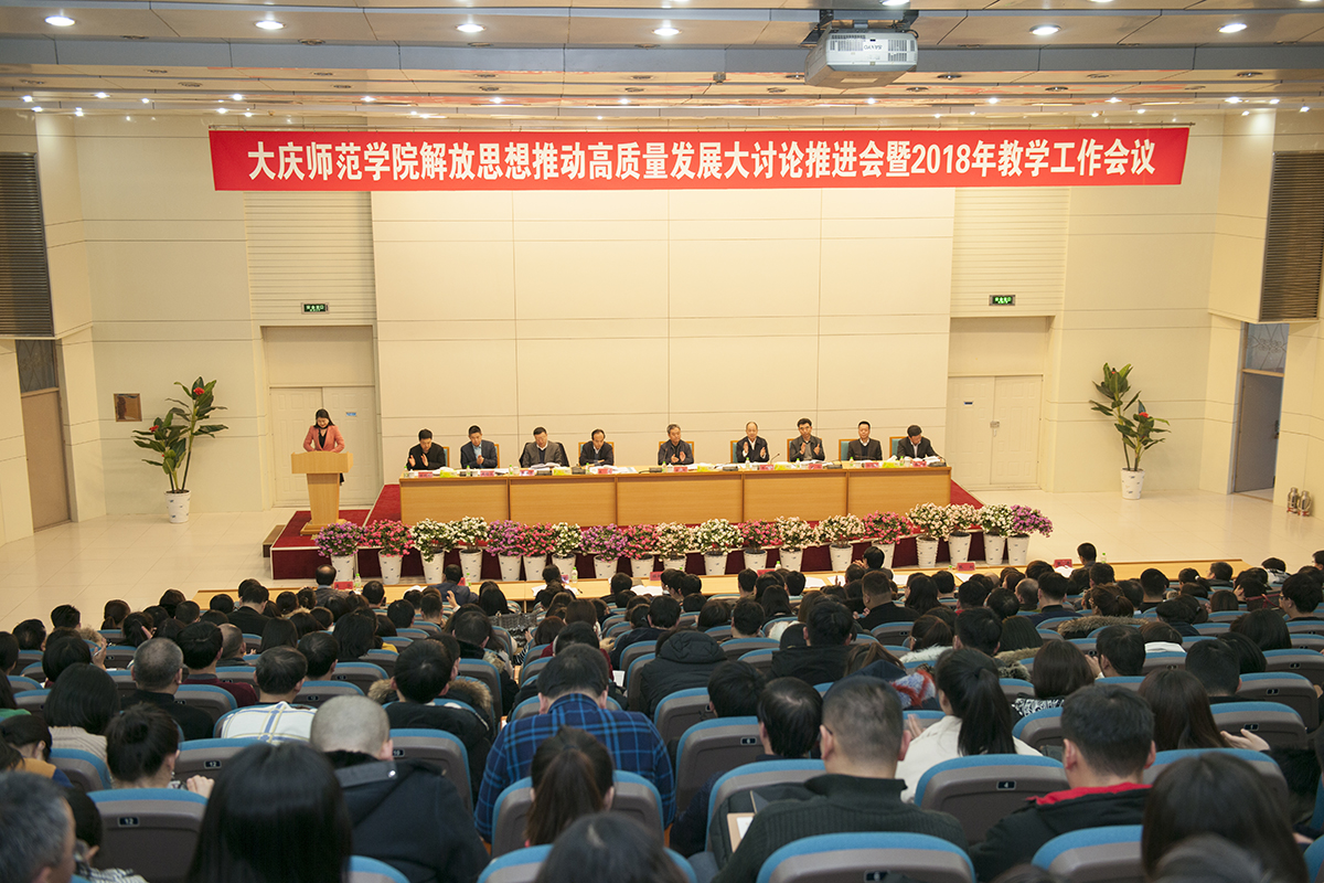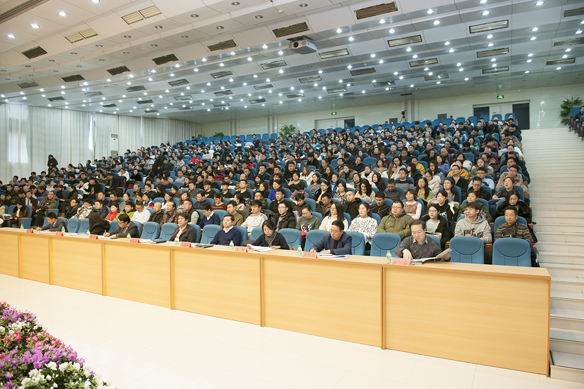 12月19日下午,bat365在百湖大讲堂召开解放思想推动高质量发展大讨论推进会暨2018年教学工作会议。学校全体教师,总督学以上领导,教务处、高教研究与教学质量评估中心、人事处、学生工作部(处)全体人员,其他机关教辅单位副科级以上领导共600余人参加了会议。
