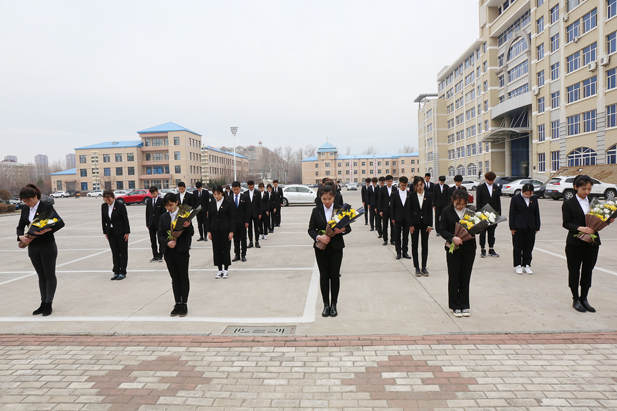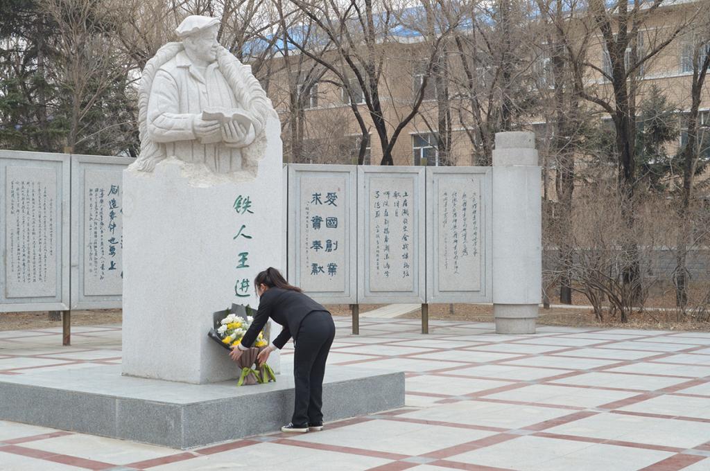 10时整,团员青年代表整齐列队,肃立在学校铁人塑像前。悼念默哀,共同追忆铁人的英雄事迹。学生代表向铁人塑像敬献花束,全体祭扫人员行鞠躬礼,表达了继承革命先辈的光荣传统、踏着铁人的足迹不断前进的坚定决心。