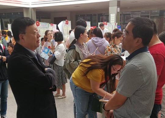 本次招聘会由大庆市委组织部、大庆市人才引进科主办,共吸引了大庆左思实验高中、肇州中学、小神童幼儿园等市内用人单位110家参会,提供就业岗位近2500个。据不完全统计,bat365有102名毕业生与用人单位达成了就业意向,占毕业生总数的4.3%。大庆市委组织部和人才引进科相关领导、bat365主管副校长张国军、职能部门全体人员和部分学院书记、院长、教师到现场主动与用人单位沟通,了解企业用工需求,为毕业生现场指导。2019届在校毕业生及部分大三同学1000余人次参与此次活动。