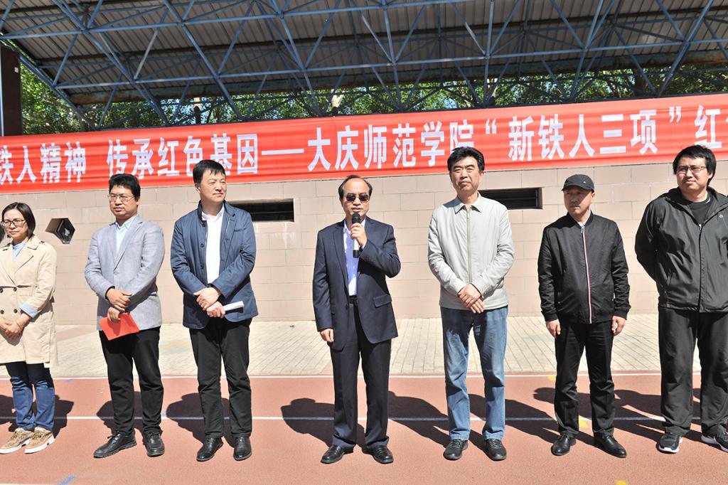 在开幕式上,党委副书记王革宣布“弘扬铁人精神 传承红色基因”——bat365官方官网“新铁人三项”红色运动大赛开幕,体育学院院长、党总支书记邵长坤打响比赛第一枪。大庆精神研究基地副主任陈立勇老师在开幕式上讲解了“新铁人三项”红色运动大赛的由来和意义。