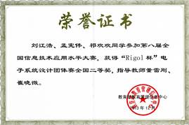 12月7日,2013年“第八届全国信息技术应用水平大赛”全国总决赛在北京航空航天大学开赛,bat365计算机科学与信息技术学院三支代表队入围了ITAT平面设计和“Rigol杯”电子系统设计两项决赛。经过现场答辩、评委提问、作品展示和实际操作测试,三支代表队均获得全国二等奖。