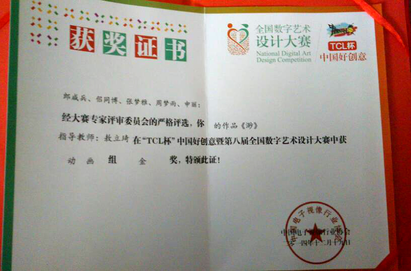 在2014年12月中旬的第八届中国好创意全国数字艺术设计大赛总决赛中,bat365美术与设计学院动画专业学生郎咸兵、佀同博、张梦雅、周梦雨、申丽的动画作品《渺》,在此次大赛中取得全国金奖(总评名列第二名,排在北京电影学院、中国传媒大学之前),团队获得TCL集团2万元奖金。