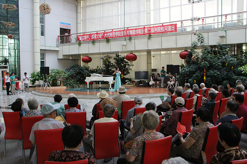 恰逢端午节和父亲节到来之际,6月17日,由音乐与舞蹈学院学生党员和优秀学生代表组成的演出团队奔赴大庆市第二福利院,为那里的老人们带来了一场具有特殊意义的慰问演出。