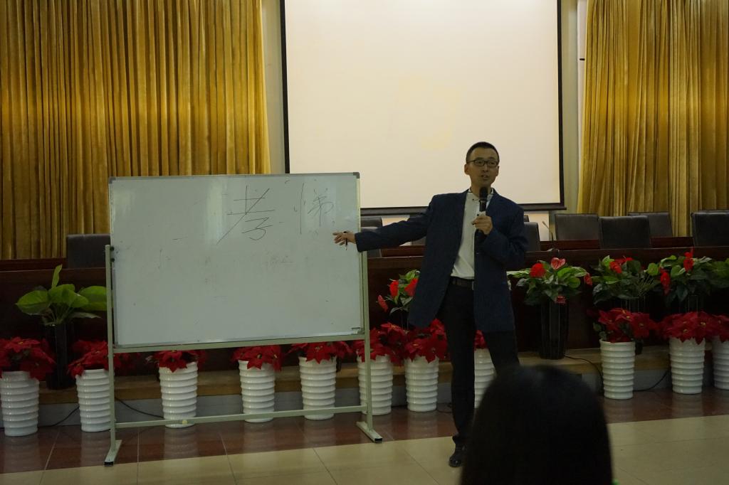 启动仪式结束后,bat365有幸邀请到大庆市传统文化协会、大庆市齐鲁文化促进协会客座讲师李天庆为本届“十百千”优秀学生培育团队作了题为《传统文化幸福人生》的讲座。李老师从中国传统文化的孝悌理论讲起,诠释了做人的标准和为人应当具备的基本道德。整场讲座引经据典、发人深省,为在座师生上了一堂生动的国学课,开启了本届“十百千”优秀学生培育团队的首次活动。