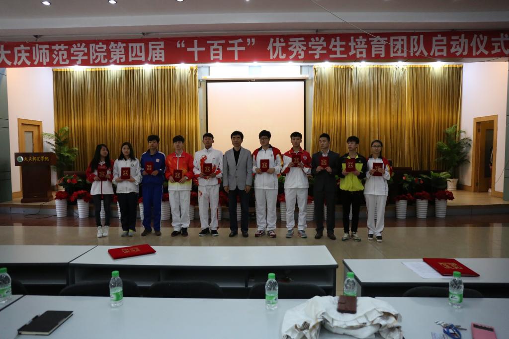 会议首先通过视频回顾了往届活动的精彩瞬间,介绍了团队及团队指导教师的基本情况,对第三届“十百千”优秀学生培育团队中涌现出的先进集体、先进个人进行了表彰。会上,体育学院学生党支部书记孙波代表指导教师发言,他说:“作为培育团队的指导教师,我们有信心、有决心,也有能力做好团队思想上的引领人、学习上的引路人、生活中的关爱人。”计算机科学与信息技术学院学生冯博代表全体新成员明志:毅力决定成功,进取决定未来,坚信自己的力量,向着梦想进发。