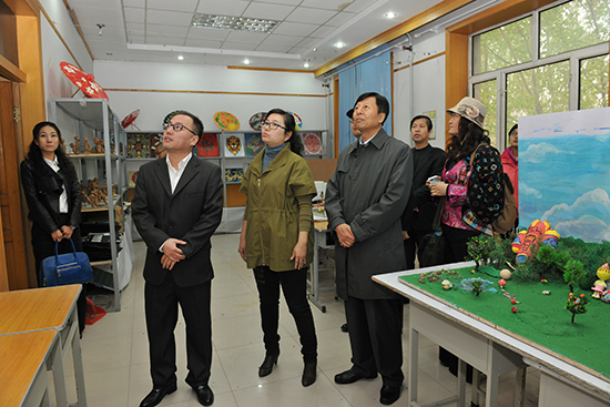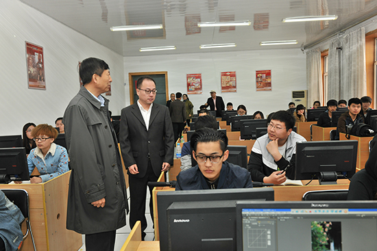在副校长杨锐锋、服务地企办主任王海陪同下,北京环球嘉艺文化传媒有限公司副董事长陈俊、国际部总监顾斌等企业领导参观考察了美术与设计学院动画专业实验室和课堂教学。