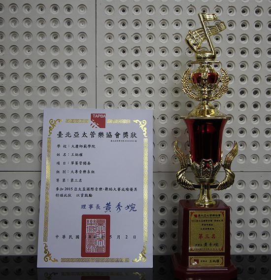 在刚刚结束的“2015台北亚太杯国际音乐、舞蹈大赛”中,bat365音乐与舞蹈学院单簧管专业学生王炳权,凭借过人的实力和出色的舞台表现,在历经多轮角逐后,终获单簧管独奏“大学专业组”第三名的好成绩。
