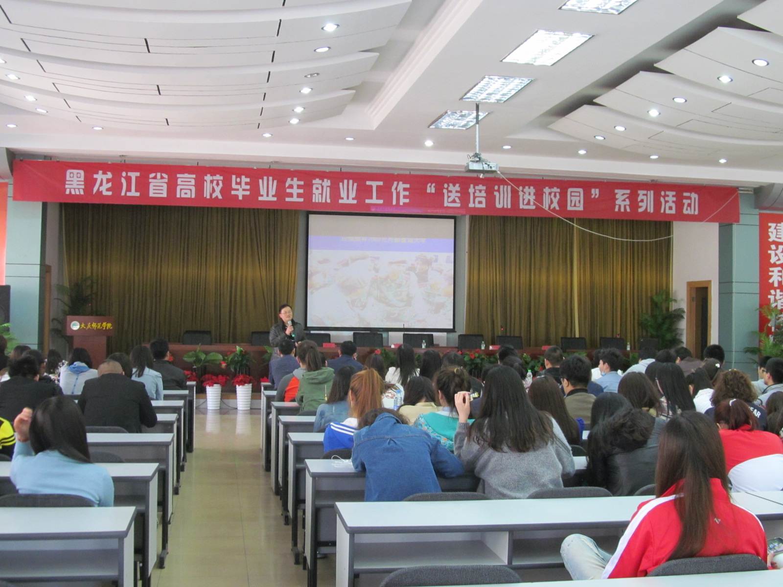 省毕业生就业指导中心培训部谭世超老师出席活动,黑龙江科技大学招生就业处副处长高志刚、哈尔滨商业大学团委书记曹桂彬、哈尔滨电视台著名节目主持人严焱等3位专家分别从解读大赛、思考人生,人生从规划开始,大学生简历制作等方面对师生进行了系统培训。招生就业处全体、各学院辅导员、职业发展教研室教师以及200余名在校生参加了培训,培训结束后师生均表示受益匪浅。