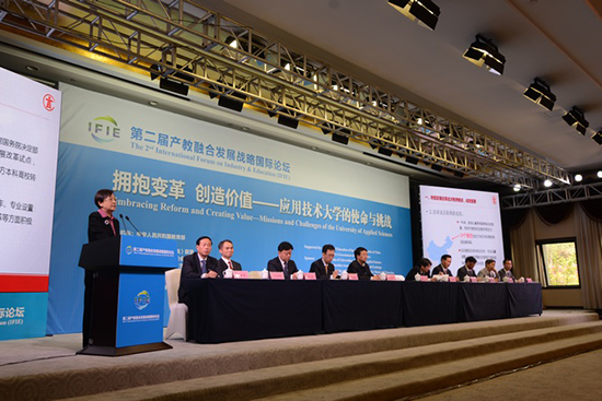 此次论坛以“拥抱变革、创造价值——应用技术大学的使命与挑战”为主题,围绕“应用技术类型高校在国家创新体系中的地位与使命”、“新兴战略性产业与高层次技术技能型人才培养”、“中国特色应用技术大学的价值重建与评估体系研究”等议题展开。论坛上,教育部副部长鲁昕指出,引导部分本科高校转型发展目前已经成为各地、行业企业、地方高校的广泛共识和共同行动,转型发展改革试点有序推进,成效显著,主要表现在:顶层设计取得新进展,改革试点取得新成效,产教融合实现新突破,国际合作实现新开局,联盟工作取得新成果。当前,经济发展进入新常态,发展方式发生深刻转变,创新驱动发展战略深入推进,经济结构经历深刻调整,新技术革命带来全方位深刻变革,人口和劳动力结构发生深刻变化,全球化和信息化带来深刻挑战,为此,我们必须未雨绸缪,超前布局,积极探索适应时代发展的新型学校和新型教育业态,促进教育与信息化的融合发展,全面激发教育体系的活力,提高竞争力。