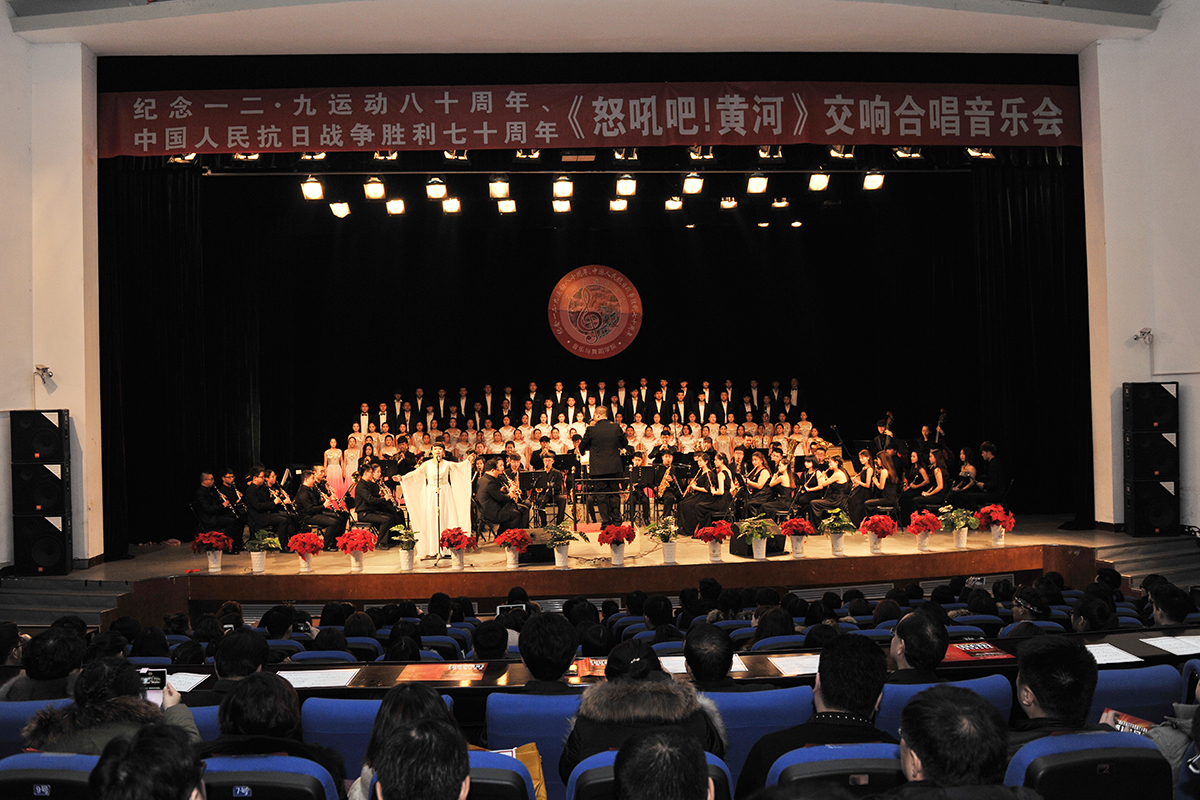 12月9日下午,由学生工作部(团委)主办,音乐与舞蹈学院承办的纪念一二·九运动八十周年、中国人民抗日战争胜利七十周年《怒吼吧!黄河》交响合唱音乐会在bat365大学生活动中心举行。