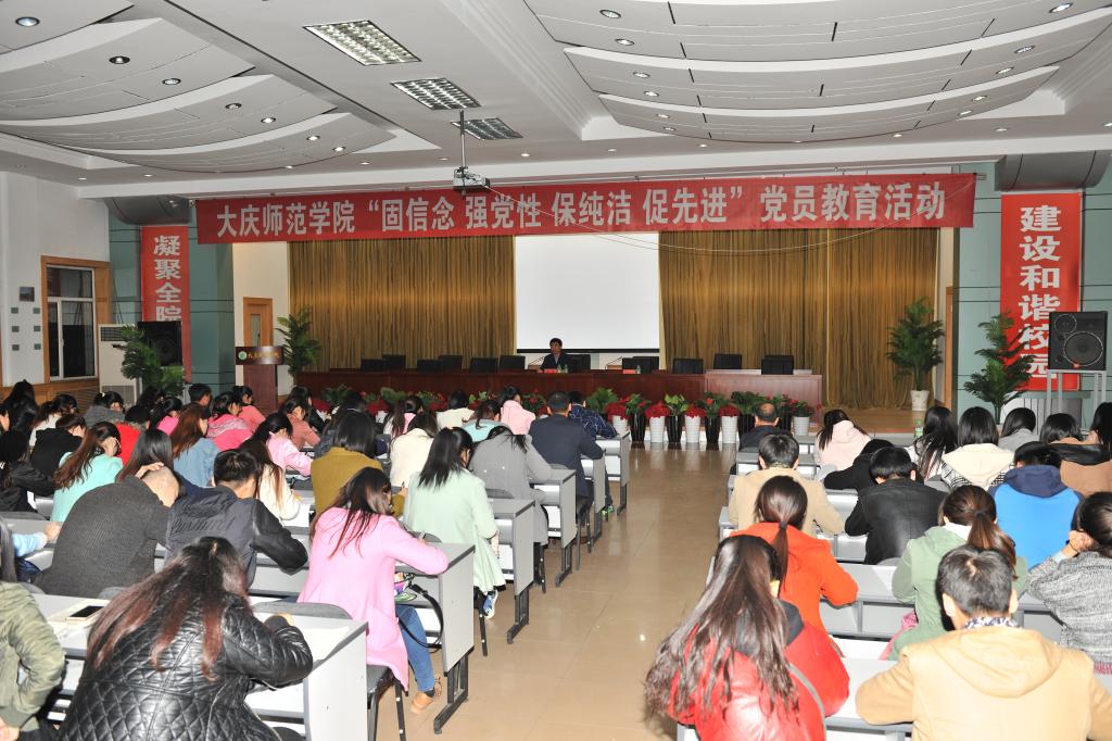 按照学校“固信念 强党性 保纯洁 促先进”党员教育活动安排,10月21日下午党委组织部(党校)邀请学校党委副书记刘恒同志为学生党员作“塑造优良人格品质做铁人式社会主义建设者和接班人”专题讲座,2013、2014级127名学生党员参加了此次活动。