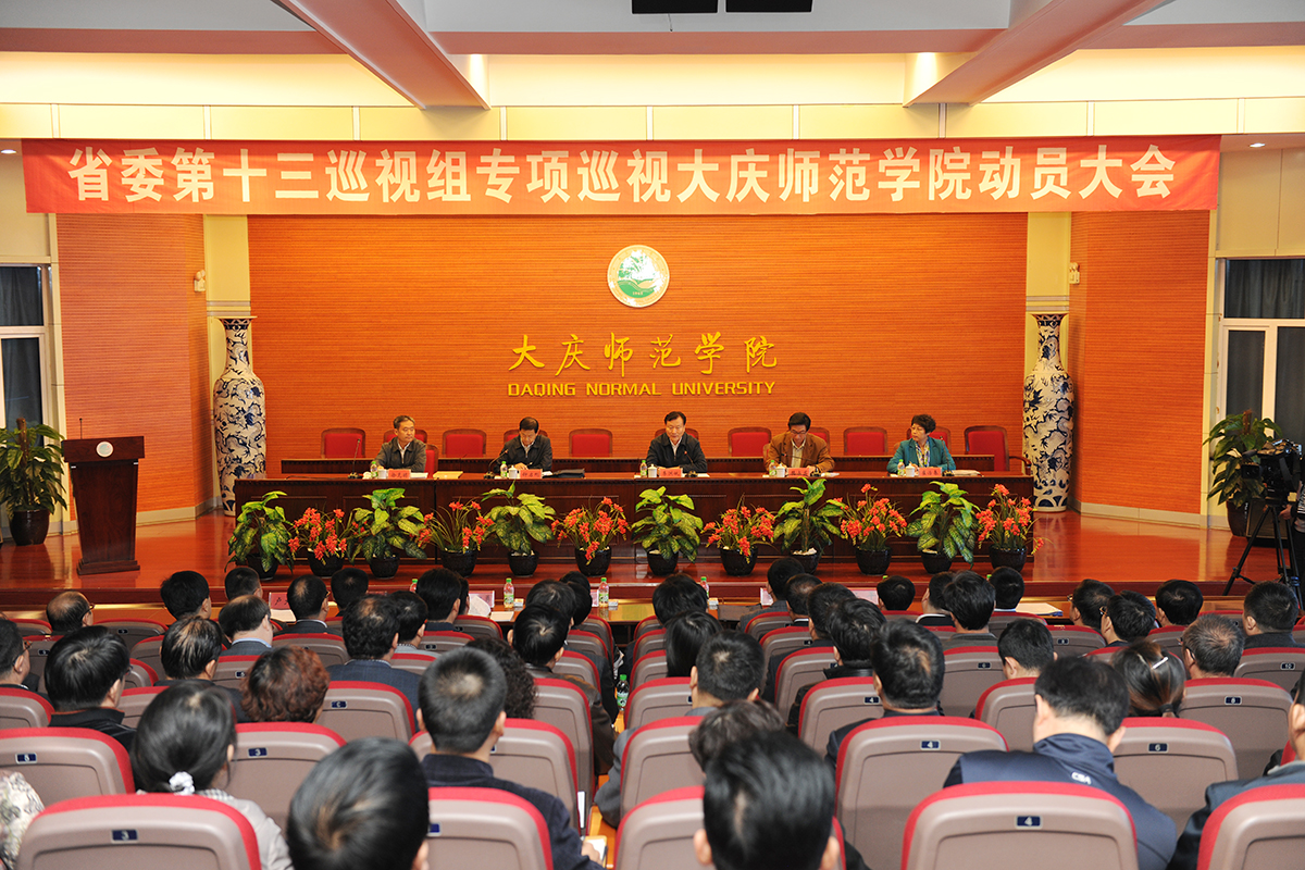 10月9日上午,专项巡视动员大会在bat365图书馆博雅讲堂召开。省委巡视工作领导小组成员、省委巡视办主任李洪斌,省委第十三专项巡视组组长樊占盛、副组长崔治春,巡视组成员刘红菊、史振涛、乔增正、张智勇、吕平、张文龙、李俊峰出席大会,学校领导班子成员、中层干部、正高职人员以及学科带头人参加大会。会议由校党委书记钟启刚主持。