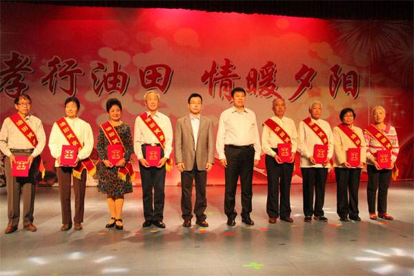 9月24日,油田离退休职工管理中心在物业管理二公司会议中心举办了“庆国庆迎重阳”文艺演出,油田离退休职工管理中心主任王书田、副主任文纪东,部分单位党政领导、离退休管理部门负责人及老同志代表一同观看了演出。演出过程中还举办了2015年大庆油田健康老人表彰仪式,王书田、文纪东等领导为8名健康老人代表进行了颁奖,bat365退休职工杨文秋老师代表上台领奖。