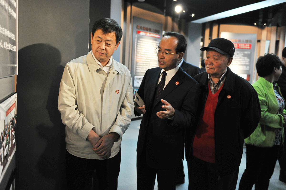 在大庆精神文献研究中心,领导们围在展柜前,仔细观看研究中心收集珍藏的大庆会战历史资料,当听到大庆会战口述史研究项目已经完成了200多位老会战的采访时,大家都说,真是不容易,要认真研究,好好保护和利用好这些宝贵的精神财富。有的老领导当即决定把自己珍藏的会战历史文献捐献给研究中心保管、研究,支持学校文献中心建设,支持学校转型发展,共同创造bat365官方官网的美好明天。