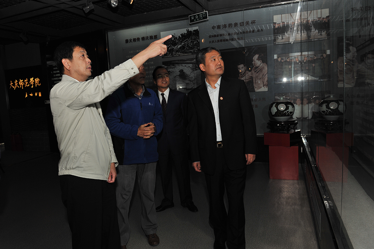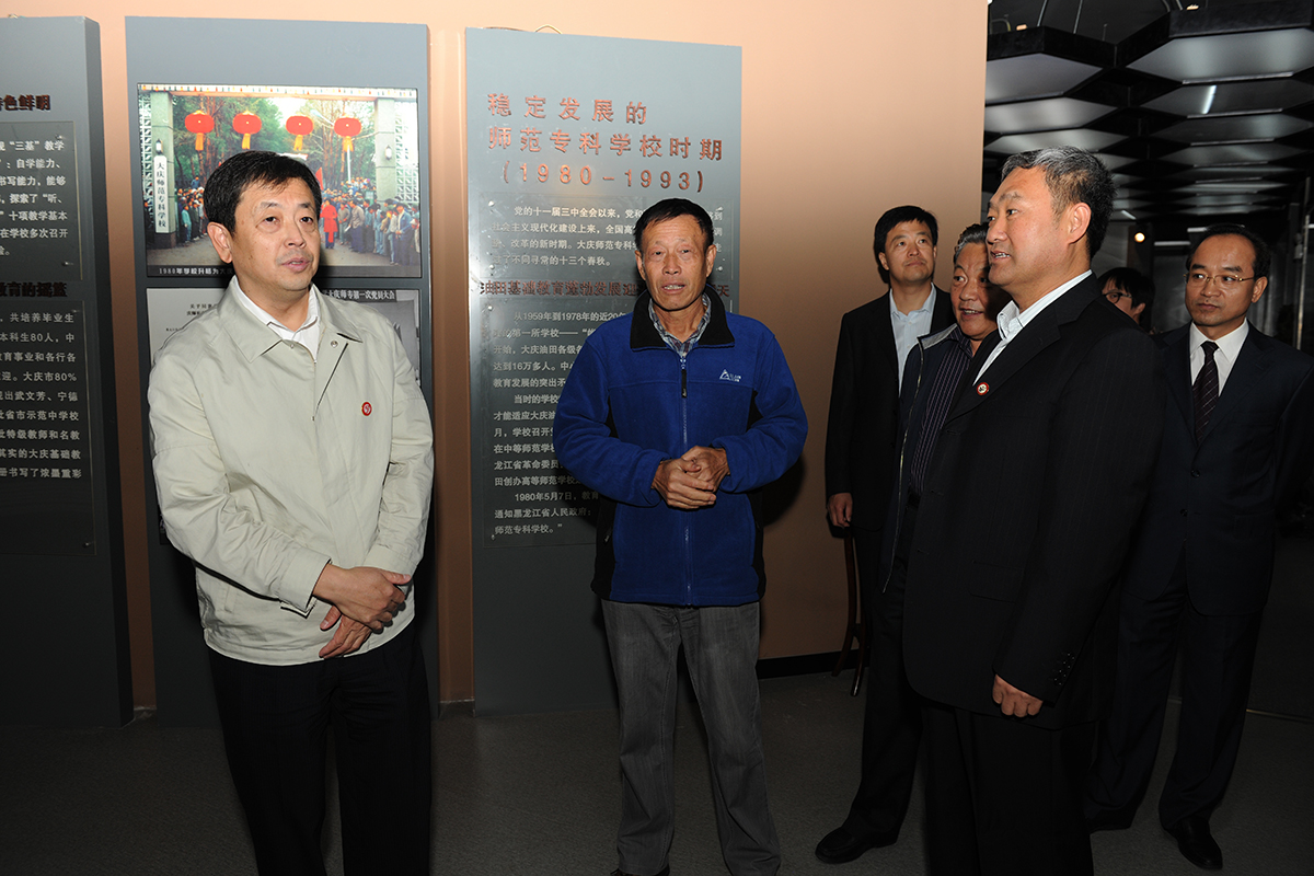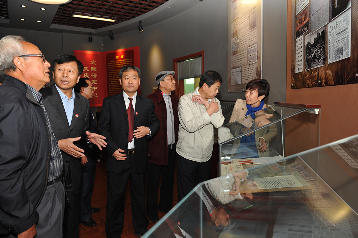 9月24日下午14时,回校参加校庆活动的学校老领导张书德、王进一、祁志群、陈绍清、郭凤林、崔戴荣、范铁荣、姜俊宏、李成群、刘义杰、程文英、孟庆芬一行12人在学校党委书记钟启刚、校长徐克明等陪同下,来到学校校史馆和大庆精神文献研究中心参观,同忆往昔,共话发展。