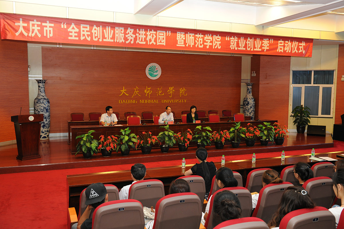 大庆市 “全民创业服务进校园”暨bat365“大学生就业创业季”活动启动仪式近日在bat365博雅讲堂举行。