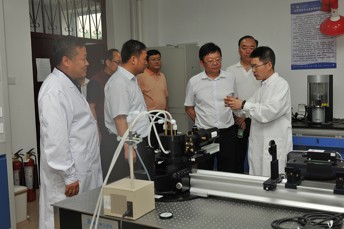 在化学工程学院,韩立华市长详细了解实验室的项目研究和服务面向,对学校在油田防垢除垢及污水处理等方面取得的科研成果表示肯定,鼓励科研工作者为地方经济提供更多更好的科技服务。