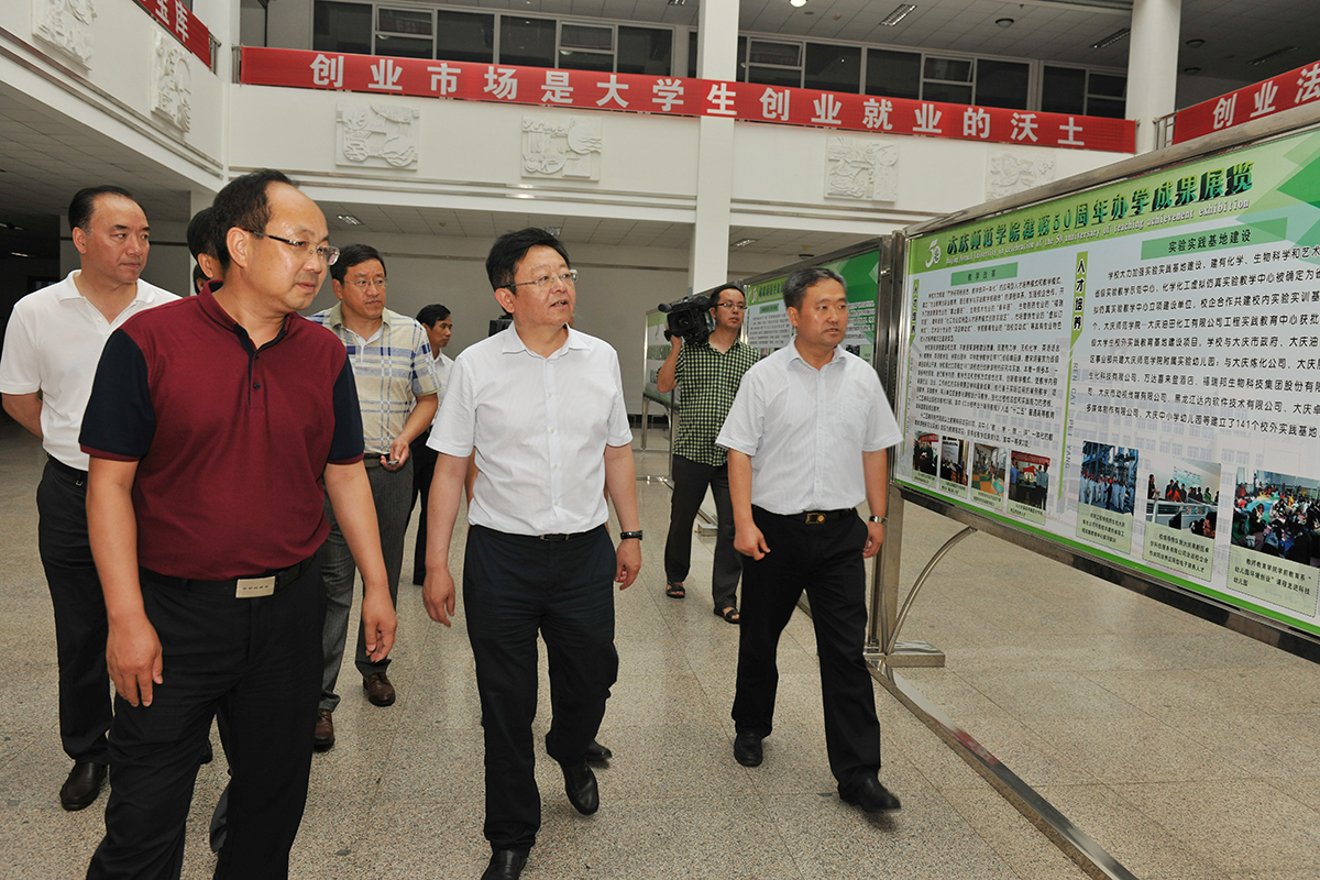 韩立华市长先后考察了学校方晓校区、机电工程学院、化学工程学院、教师教育学院等教学实验和实习实训基地,学校大学生创业园区、大庆油陶等创业项目,听取了校领导关于学校教学科研等方面的情况汇报。
