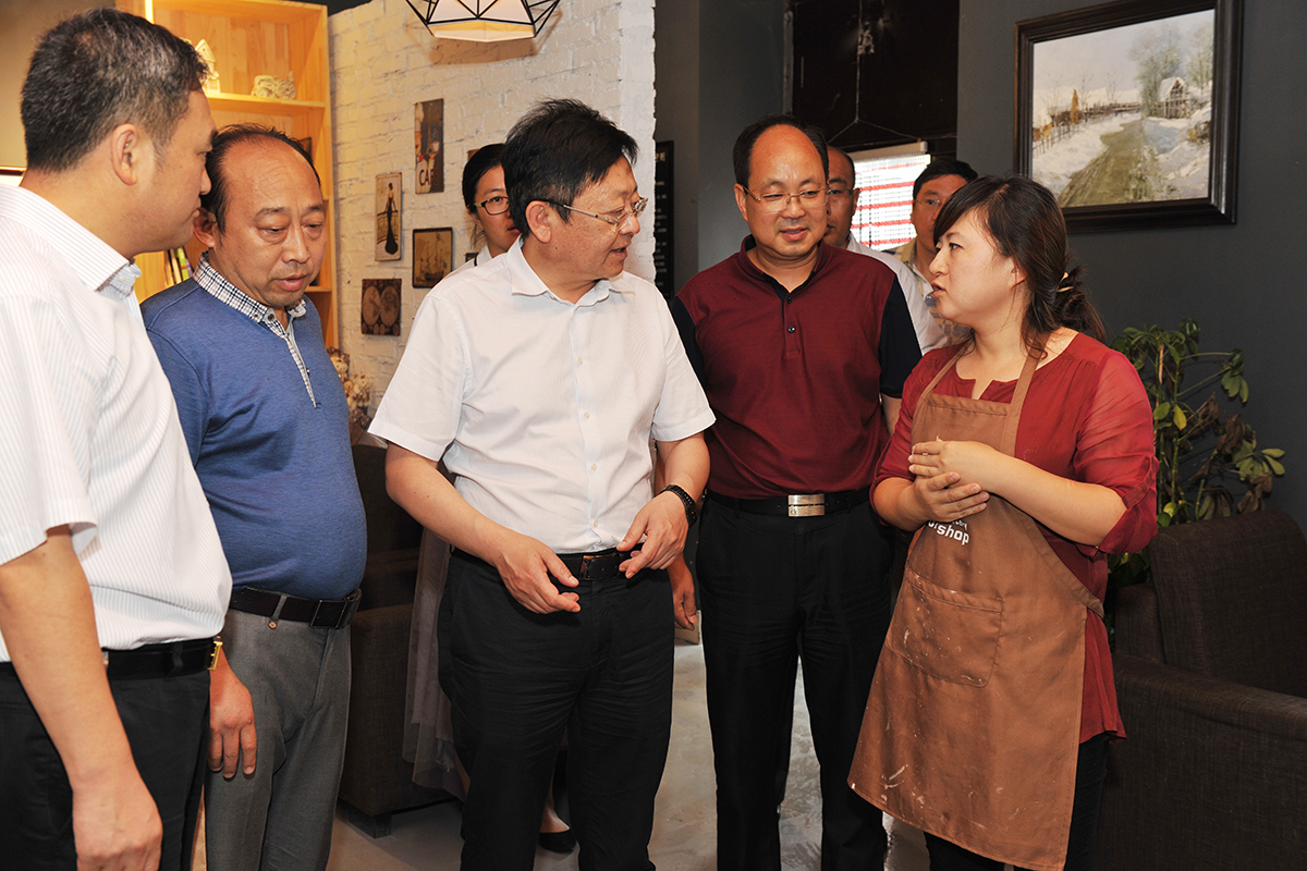 在大学生创业园区,韩立华市长参观了创业超市、创业项目孵化区,与乐淘坊工作室、天邦建筑装饰设计室等入驻企业负责人亲切交谈,详细了解企业助力大学生创新创业情况。