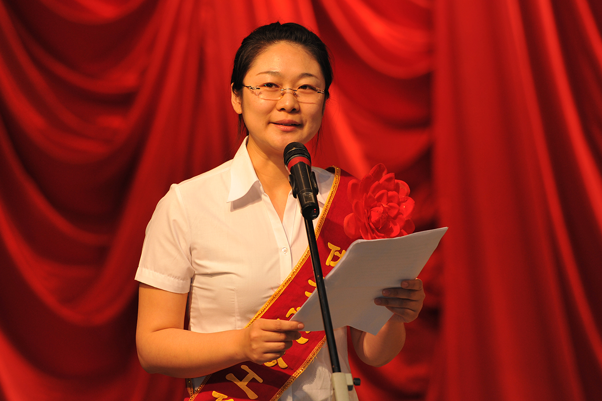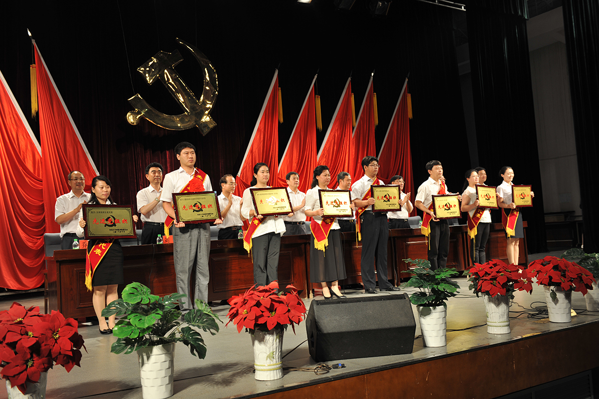 在欢快的进行曲中,校领导为获得省委高校工委、油田党委和学校党委表彰的“先优”代表颁发奖牌和证书。