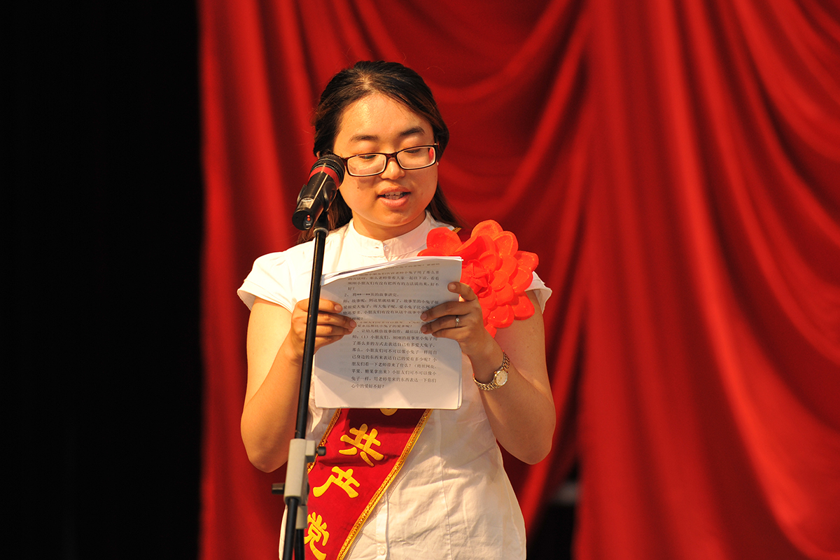先进党组织代表、教师教育学院学前教育教工党支部书记姜珊珊,铁人式优秀共产党员代表周丹和铁人式优秀党务工作者代表邓雨巍分别做典型发言。