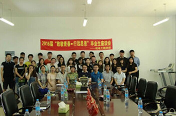 6月20日上午9:00机电工程学院在综合楼301举办2016届“致敬青春·行远思恩”毕业生座谈会。大会由学生党支部书记邓雨巍主持,机电工程学院院长徐权、党总支书记高玉芝、副院长刘开绪、刘永皓,团总支书记魏旭及部分教师出席,毕业生代表参加。会上,徐院长致辞,他表达了对毕业生的祝福,并希望同学们能够牢记院训:真诚守信,博爱感恩。毕业生代表分享各自的考研经历及实习经验,表达对机电工作学院的感恩之情,感谢各位专业老师在学业及未来规划上给予的帮助。座谈中老师们为毕业生送上祝福,嘱托未来无论遇到任何困难,母校仍然是同学们最坚实的后盾。座谈尾声,高书记向毕业生提出四点希望:一是希望同学们身心健康,阳光心态;二是要继续学习,增长才干;三是沉心静气,厚积薄发;四是有所为有所不为。