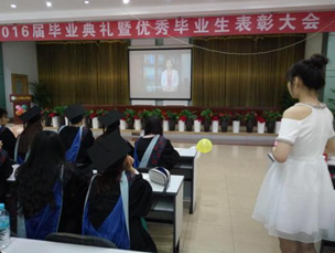 6月22日13时30分外国语学院2016届毕业生毕业典礼暨毕业演出于大学生活动中心进行。院长葛建民、党总支书记王淑梅、副院长冯展极、院长助理罗明江、学生党支部书记梁为、2012级辅导员张婷婷以及全体教师参加了毕业典礼。张婷婷老师宣读2016届优秀毕业生、省三好学生以及铁人式优秀毕业生名单,院长葛建民、党总支书记王淑梅、学生党部书记梁为分别为他们颁奖。优秀毕业生代表张严匀代表毕业生发表毕业感言,在校生代表张萌为毕业生献上祝福。随后进行了毕业演出,从青春洋溢的爵士舞到异域风情的印度舞再到英语系师生充满活力的动感舞蹈;从伤感充满离别的歌曲《匆匆那年》到黄怡红老师慷慨激昂的美声歌曲《祖国我在你的怀抱里》;从充满离愁别绪的歌曲《大庆师范的日子》到情景小品《女生寝室的那些事》无一不勾起学生们的深深回忆。此次演出在《不说再见》的歌声中圆满落下帷幕。