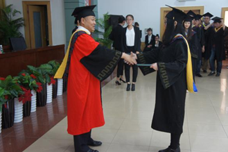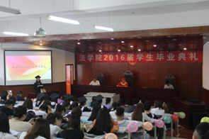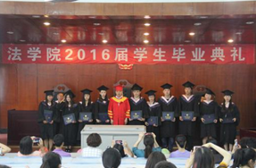 6月22日下午1点30分,法学院于模拟法庭举行了2016届学生毕业典礼,校长助理和院长丁启明教授、党总支书记王金波及全体教师、2016届全体毕业生参加了本次毕业典礼大会。毕业典礼在全体师生高唱国歌声中正式拉开帷幕。学生党支部书记宣读了毕业生名单、获得学士学位名单,院长丁启明教授为毕业生颁发了毕业证及学位证。党总支书记王金波表彰通报了荣获省级三好学生、校优秀毕业生名单并颁发了获奖证书。2016届学生徐思嘉代表全体毕业生发言。全体师生在典礼大会上观看了毕业典礼视频短片,2012级三班全体学生为所有教师献上了一束鲜花,表达了他们对老师的感恩之情。最后,院长丁启明、党总支书记王金波分别讲话,勉励毕业生要将毕业当做人生新的起点,以报效国家的豪情壮志投身到伟大的事业中去,发扬依法治国精神、将中华民族传统文化发扬光大,争做一名铁人式的合格大学生。