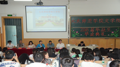 2016年6月20日下午,文学院在阶梯教室举行2016届毕业生毕业典礼。党总支书记何长仁教授主持,院长赵丽教授、院长助理原昊博士、院长助理、汉语国际教育系主任徐晶、汉语言文学系主任张宇宁老师等莅临此次典礼。典礼上,文学院师生共同观看了2016届毕业生纪念视频,赵院长、何书记和张宇宁老师分别代表学院领导与全体教师为毕业生送上临别寄语和衷心祝福,时刻谨记“为文学人,做文学事,怀文学魂”。王婧同学代表2016届全体毕业生发言,表达了毕业生对母校的感恩与不舍。最后,原昊老师宣读2016届全体毕业生名单,学院领导为毕业生代表颁发了学位证书。