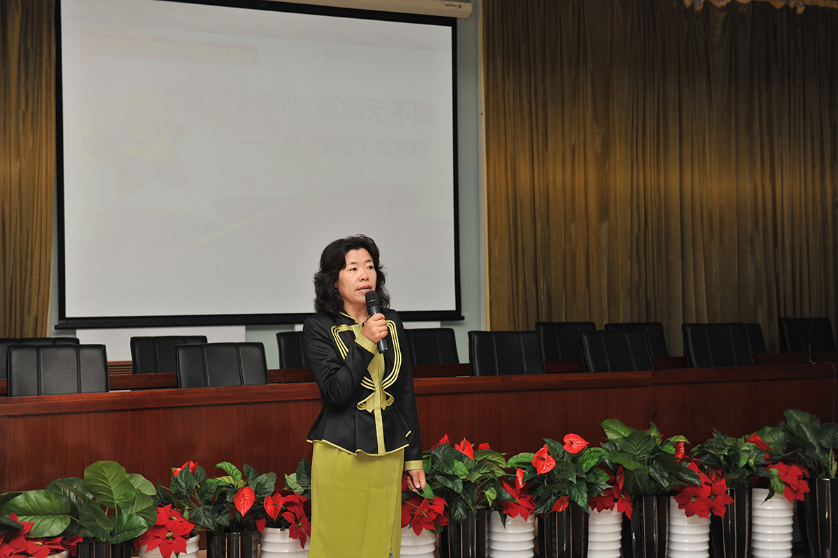 油田党委党课巡讲团成员、bat365思想政治理论课教研部赵桂英、王彦玲、马吉芬、邹俊娟4位教师,分别对《加强纪律性 革命无不胜——从党章看党纪》、《四个服从》、《<准则><条例>微解读》、《党员言论自由不等于自由言论》四个专题进行讲解。党课内容贴近党员需求、事例生动具体、语言简练深刻,具有较强的针对性,两个小时的学习使党员干部对党内法规有了更直观、更深刻的认识。
