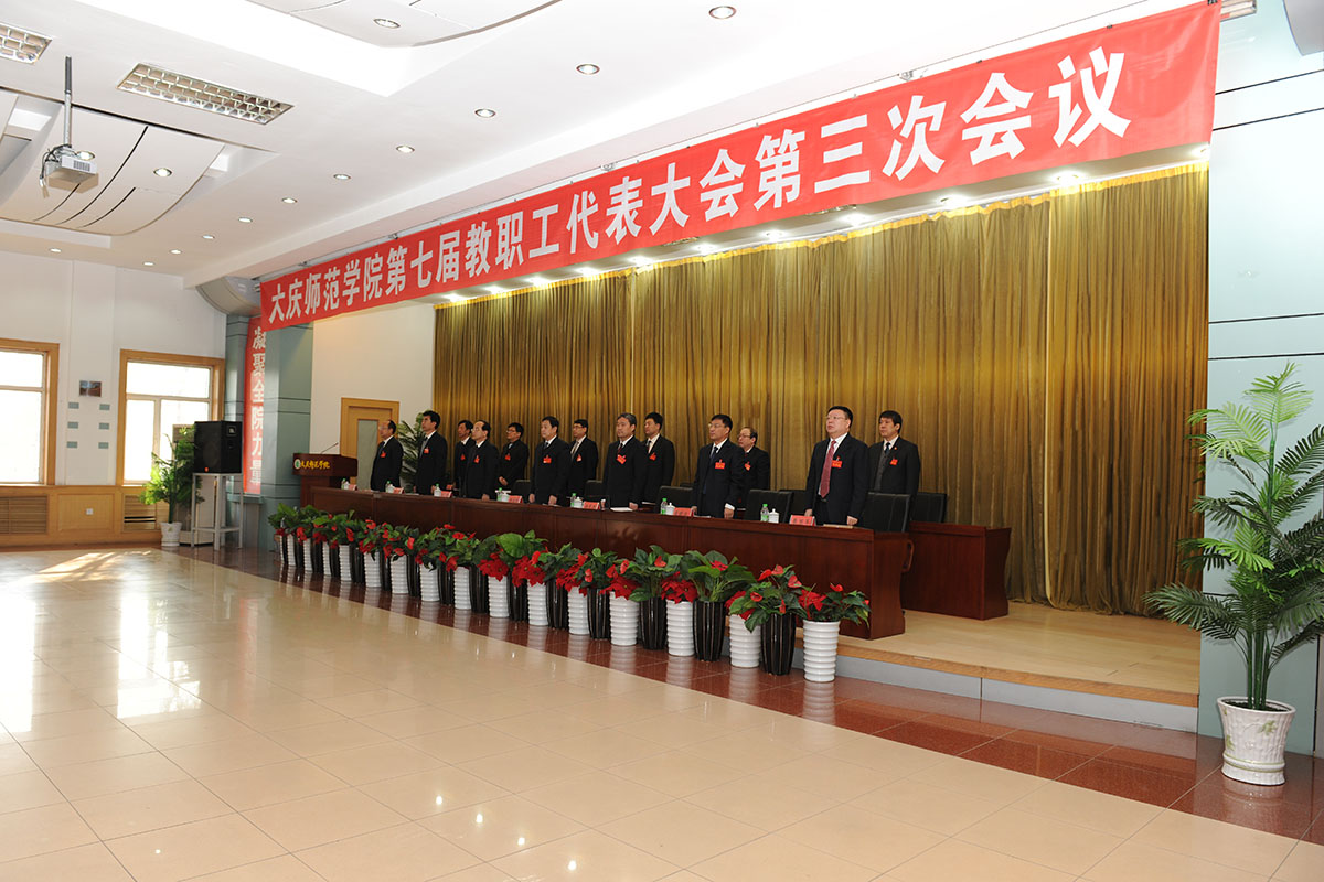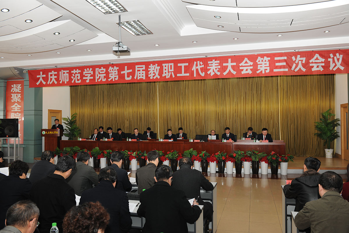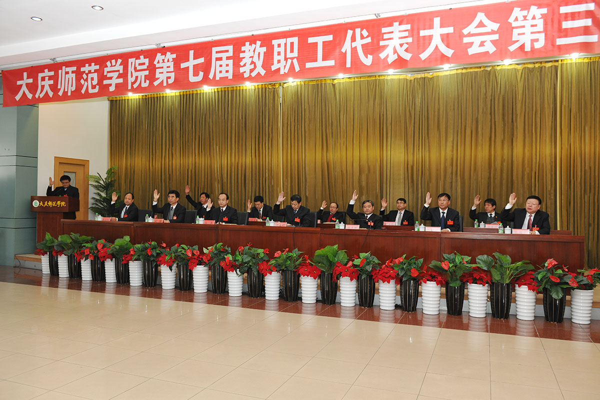 3月25日上午八点,bat365官方官网第七届教职工代表大会第三次会议在铁人讲堂隆重召开,来自全校的128名代表出席了会议。